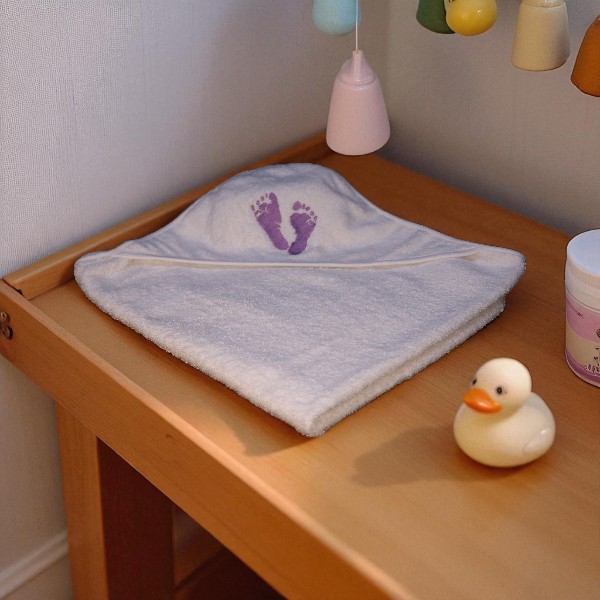 The cosy corner hood keeps little heads and ears snug, helping them wind down before bed. For an extra-special detail, this hooded towel will be personalised with your baby’s footprints – a lovely finishing touch that makes this towel an ideal gift for baby showers, christenings, or new arrivals.